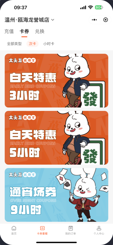 有别于正常收费,可以通过卡券满足需求。如100小时卡、月卡、季卡、年卡等